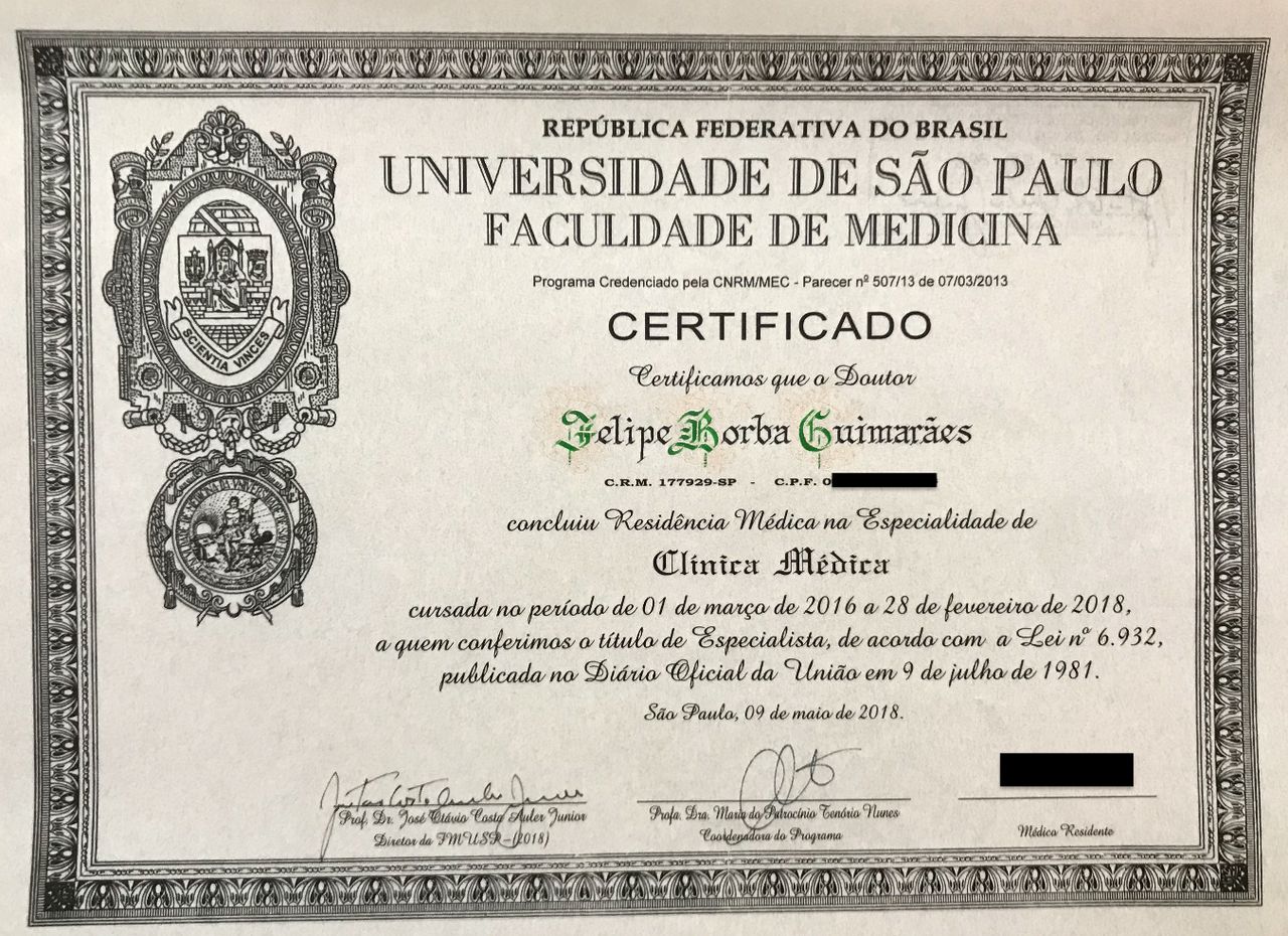 - Residência Médica em Clínica Médica - Hospital das Clínicas da Faculdade de Medicina da USP (2018)